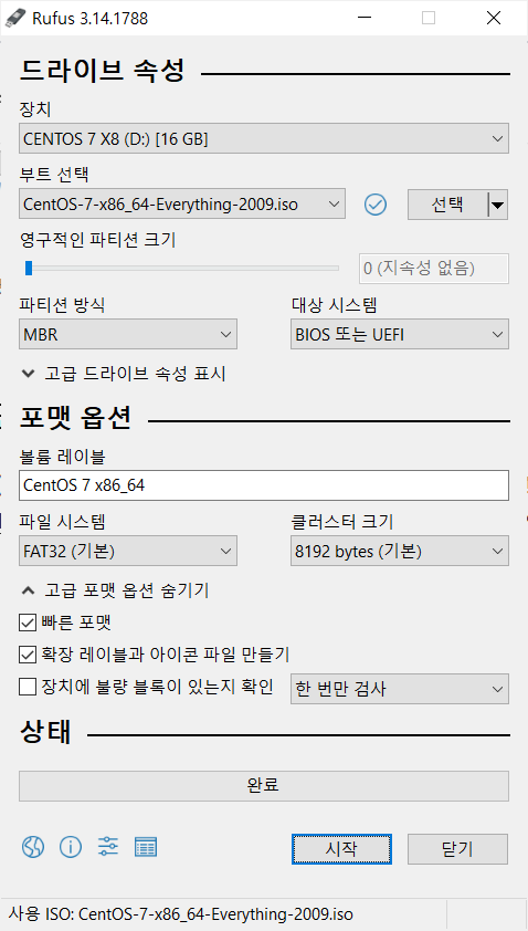 부트선택 - 디스크 또는 ISO 이미지(선택) 을 지정해두고, 우측 버튼 선택을 눌러 ISO 이미지 파일을 선택