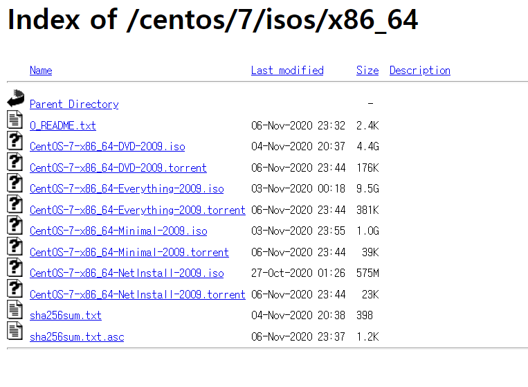 1. CentOS 7 다운로드 받기 ( mirror.navercorp.com/centos/7/isos/x86_64/ )