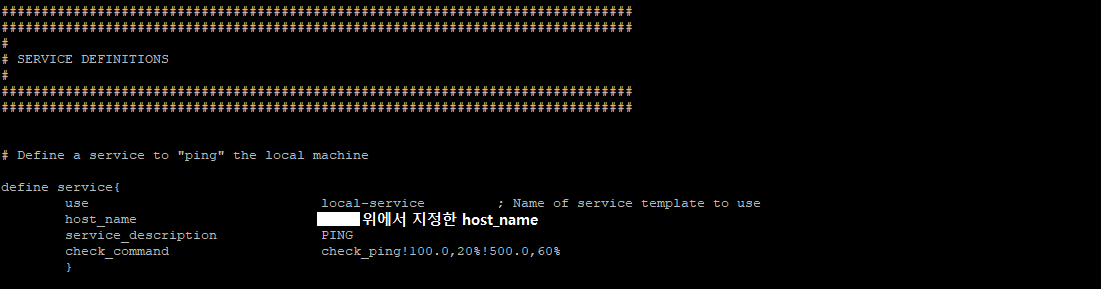이 아래로 SERVICE DEFINITIONS에 해당하는 내용에서 host_name을 "전부" 위에서 지정한 host_name으로 바꾸어야 한다.