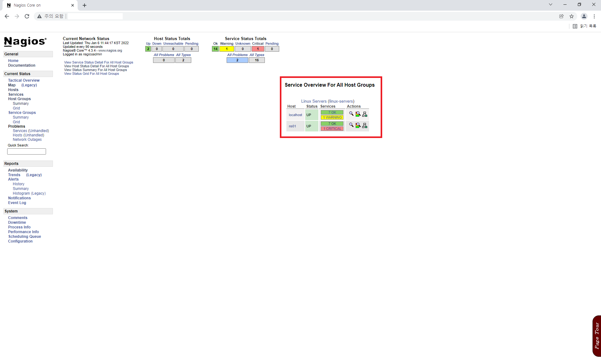4. Nagios Host Groups에서 확인