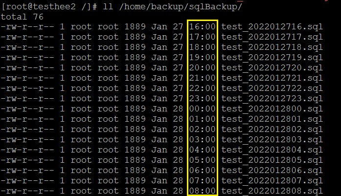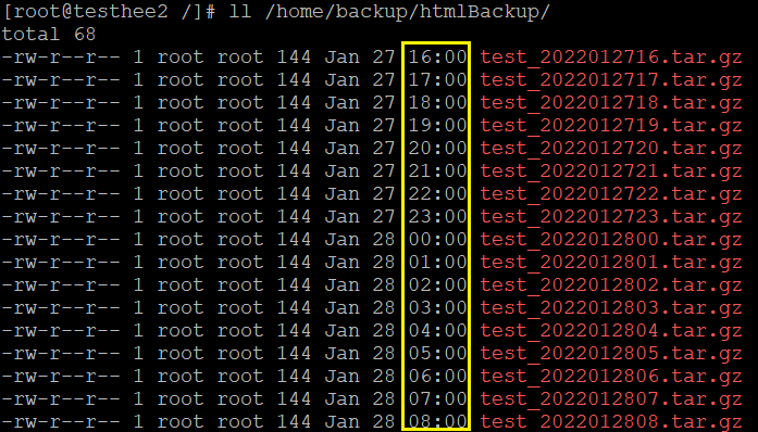 - 매 시간 00분에 shell script에서 지정했던 이름 [test_년월일시.확장자] 로 잘 나온다.
