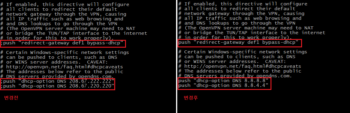 push "dhcp-option DNS 8.8.4.4"