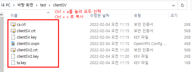 cp /etc/openvpn/easy-rsa/pki/private/클라이언트명2.key /etc/openvpn/client/클라이언트명