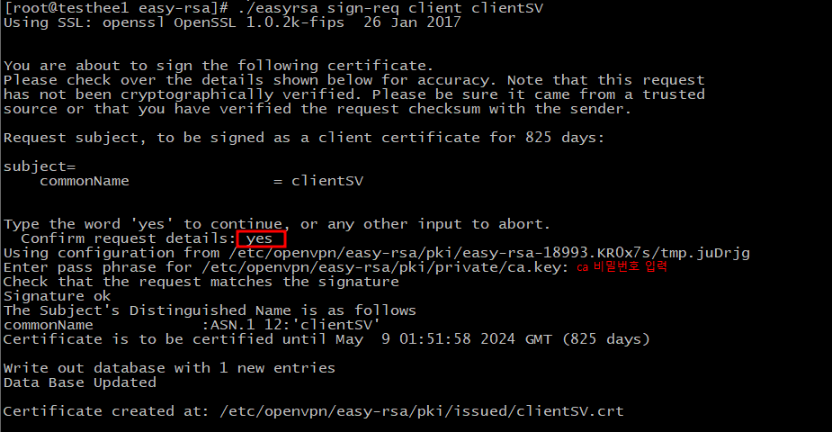 ./easyrsa sign-req client [클라이언트명]