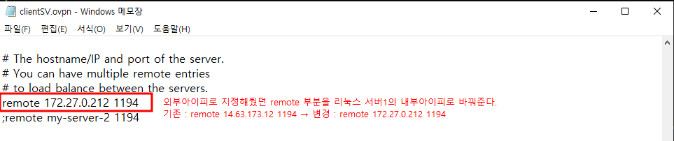 ㄴ 리눅스 OpenVPN 서버 : 172.27.0.212