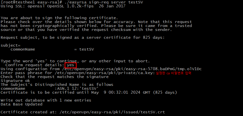 ./easyrsa sign-req server [서버명]
