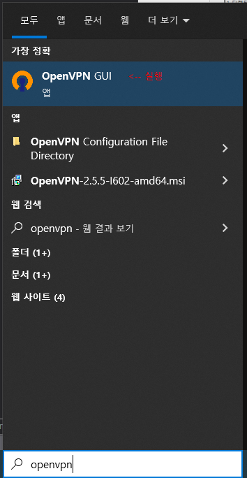 4. 윈도우 검색창에서 OpenVPN을 검색 후 아래 파일을 실행한다